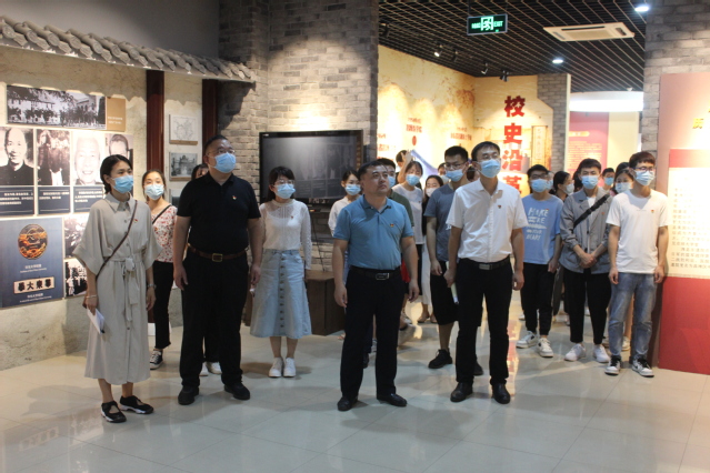 9月16日中午,午夜av 学生党支部全体党员在浮烟山校区校史馆开展“观校史、守初心,传精神、担使命”主题党日活动。党总支书记李洪先参加活动。