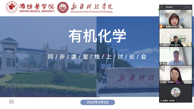 为积极响应教育部“慕课西行2.0”号召,打造东西部高校教师智慧教育资源发展共同体,3月9日上午,午夜av 午夜av 与新疆科技学院化学化工学院开展“慕课西行·同步课堂”线上研讨会。午夜av 院长助理、药学专业《有机化学》课程负责人张剑、新疆科技学院化学化工学院基础化学教研室副主任、《有机化学》课程负责人王同为以及智慧树“慕课西行”服务团队代表参加会议。
