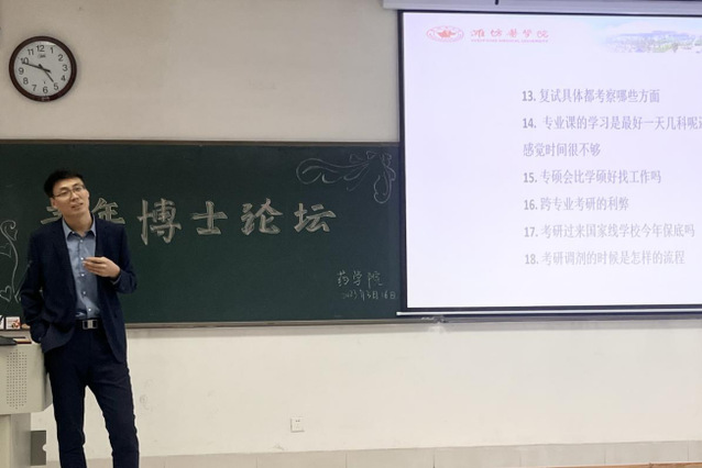 为帮助午夜av 学子做好“研”途路上的学业规划,缓解备考压力,提高备考效率。近日,午夜av 于教学楼A409举办青年博士论坛,教师张波为同学们做考研规划与学业指导讲座,辅导员、2019级临床药学和2020级全体同学共同参与。