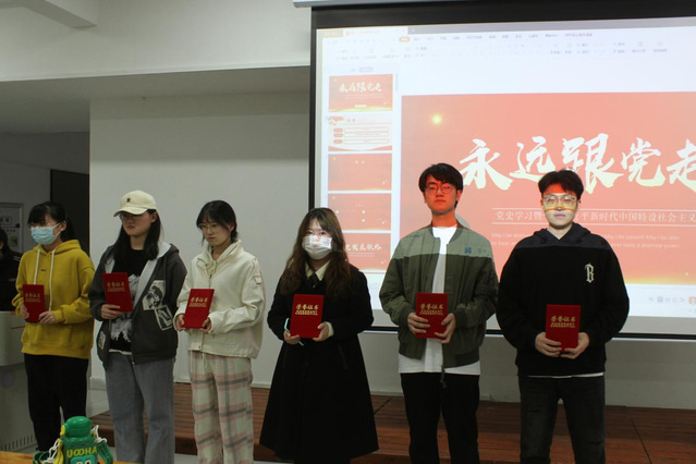 学院“初心学堂”宣讲团成员通过梳理百年党史发展脉络,回顾中国共产党在苦难中铸就辉煌、探索中收获成功、奋斗中赢得未来的百年光辉历程,带领同学们学习了习近平新时代中国特色社会主义思想“十三个方面成就”。在知识竞答环节,同学们积极抢答,经过激烈角逐,2020级临床药学本班卢轲获一等奖,2020级临床药学本班王成豪、梁辉获二等奖,2021级临床药学本班冯潇雨、2022级药学二班赵亚轩、范鑫宇获三等奖。