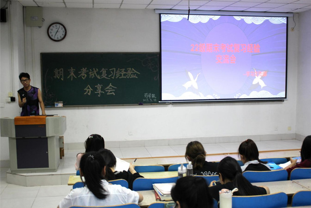 会上,来自药学和临床药学专业2021级的杨莹双、刘锦凯、李凯雯、孙养灿四位优秀学生代表分享了各自的考试复习经验和方法。针对前期征集的同学们在学习过程中遇到的困难问题,四位同学从学习方法、时间规划、复习技巧和学习心态等几个方面与同学们展开交流,强调复习要注重基础知识,对老师布置的作业也要有针对性地复习,不仅要养成良好的学习习惯,更要维持健康的生活习惯。互动交流环节中,四位同学对同学们的疑惑一一进行了解答,并鼓励同学们坚定信心,专心复习备考,争取考出好成绩。