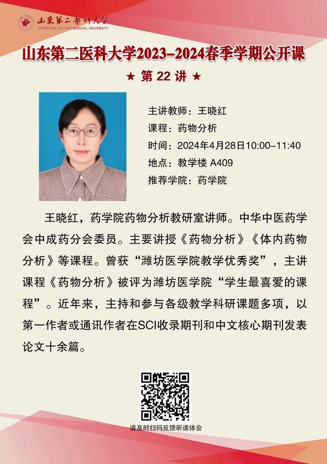 第八章药物的分析方法与验证 | 2024.4.28 周日 3-4节 | A409 |