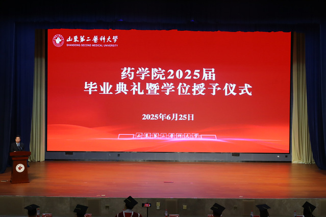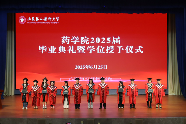 典礼在雄壮的国歌声中拉开序幕。副院长周进宣读《关于表彰2025届优秀毕业生和2025年山东省大学生医学技术技能大赛获奖者的决定》,副院长唐金宝宣读《午夜av 关于授予学士学位的决定》。随后,导师们依次为毕业生颁发学位证书、拨正帽穗,以传统学术仪式完成知识与使命的传承。