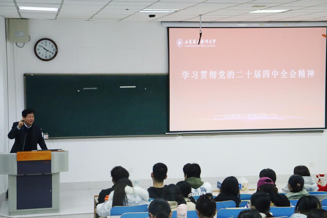 刘宪亮在领学中指出,二十届四中全会为中国式现代化建设提供了行动纲领,其中关于科技创新、人才支撑、民生保障的部署与药学学科使命高度契合。他结合学院发展实际提出三点要求:一是筑牢思想根基,把“坚持人民至上”理念融入药学人才培养全过程,培养兼具家国情怀与专业素养的高素质人才,呼应全会“让现代化成果更多更公平惠及全体人民”的要求;二是聚焦核心任务,以新质生产力为引擎,围绕新药研发、精准药学、绿色制药等关键领域,组建跨学科攻关团队,加强原始创新和关键核心技术突破,推动科技创新与产业创新深度融合;三是强化人才支撑,借鉴“教育-科技-人才”一体推进机制,深化青年人才“传帮带”培养体系,优化人才评价机制,为学院高质量发展注入不竭动力。会上,党委班子成员结合分管工作谈落实思路。随后班子成员、支部书记、辅导员开展二十届四中全会精神宣讲