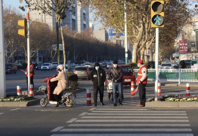 料峭冬日的清晨,寒意浓浓,党员志愿者就来到东风西街与永安路路口,在早7:30-8:30的“早高峰”中进行交通安全志愿服务。志愿者们积极协助交警开展文明交通引导:在十字路口引导市民遵守交通法规,劝导不按规定路线行走的行人和非机动车辆严格按照交通信号灯行驶;提醒骑乘人员自觉佩戴安全头盔,做好自身安全防护,提高行人安全交通意识。志愿服务结束后,党员志愿者前往月河社区党群服务中心,同月河社区党委书记陈天虎就开展好党员“双报到”进行了座谈交流,就进一步联动开展志愿服务达成共识。